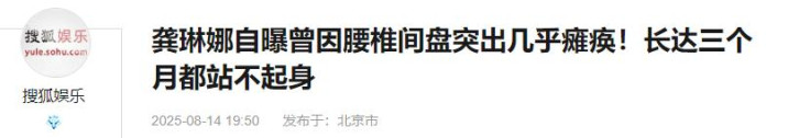 搜狐娱乐《龚琳娜自曝曾因腰椎间盘突出几乎瘫痪!长达三个月都站不起身》